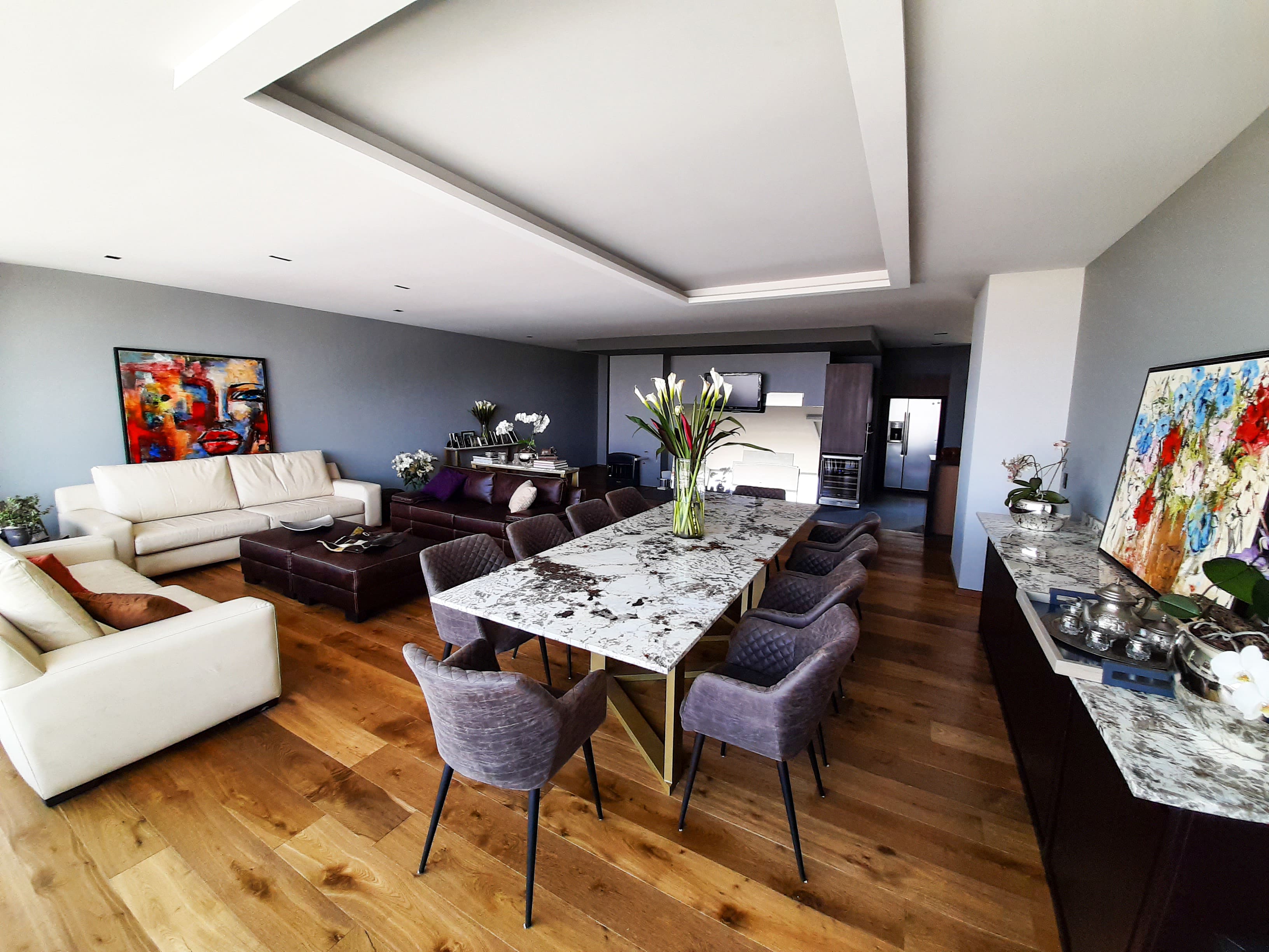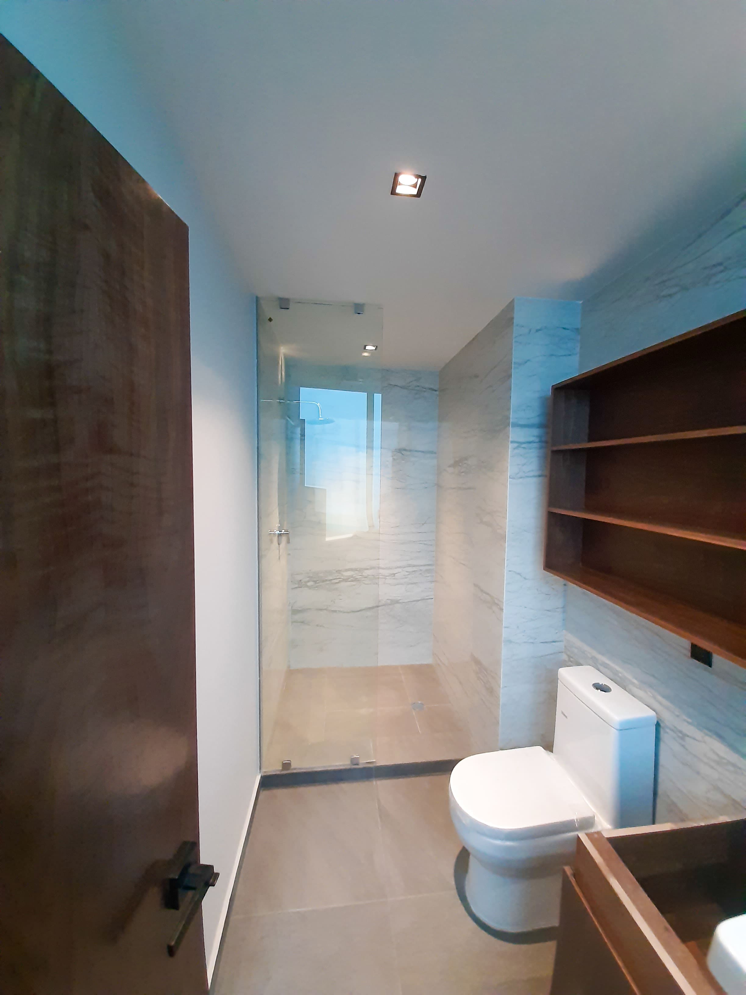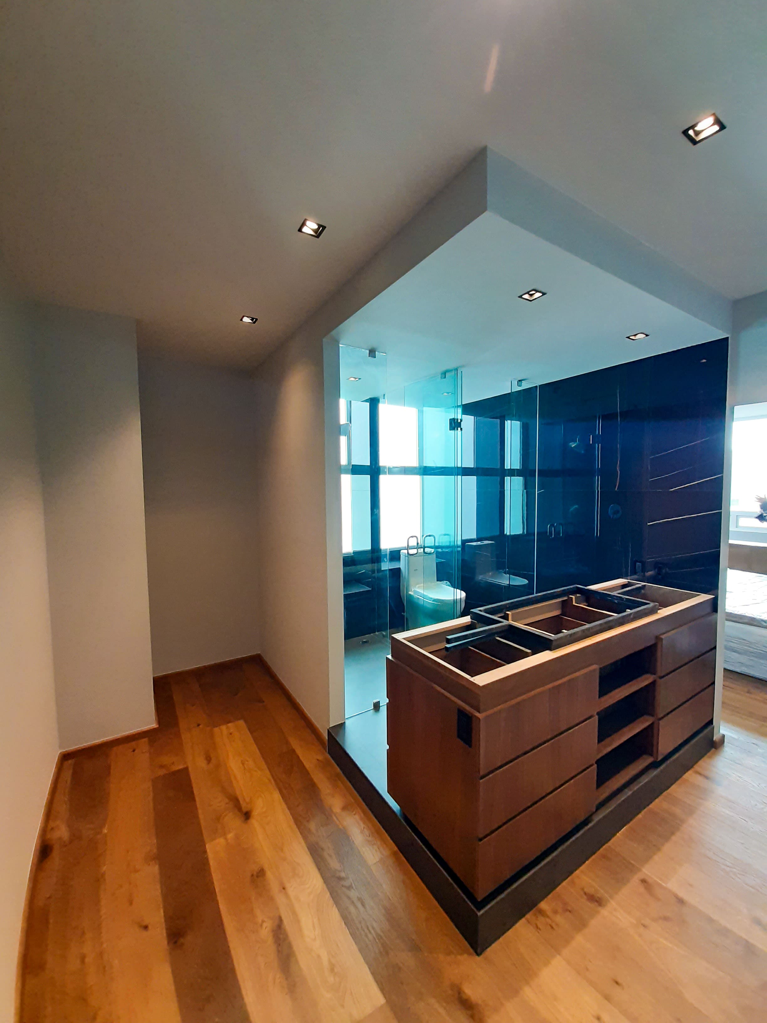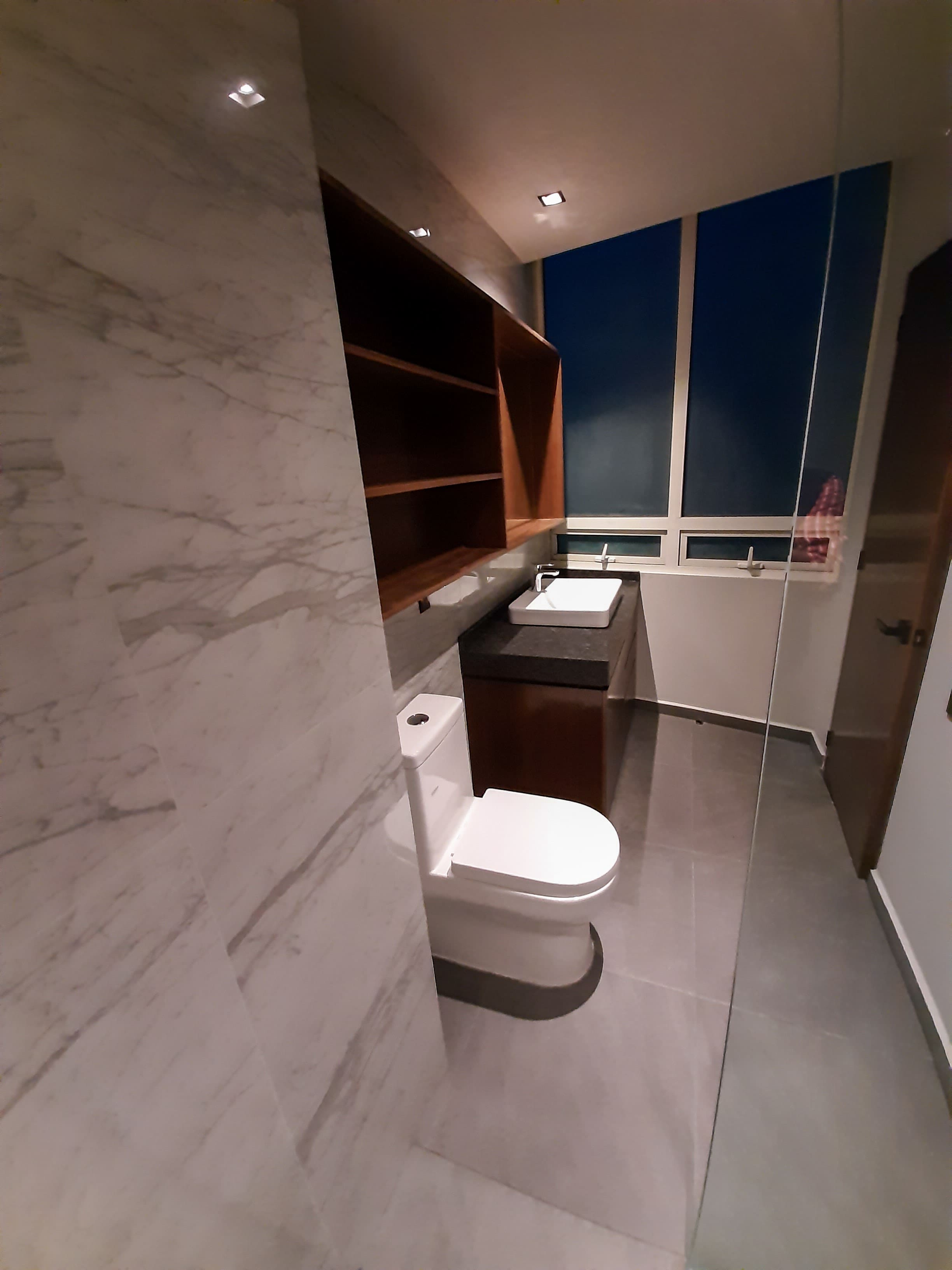 La rehabilitación de este penthouse en Santa Fe, se completó en solo cuatro meses centrándose en renovar completamente los acabados y recubrimientos de cada espacio. estableciendo un estilo minimalista y contemporáneo, con el uso de materiales como madera y mármol para lograr un espacio elegante y moderno.